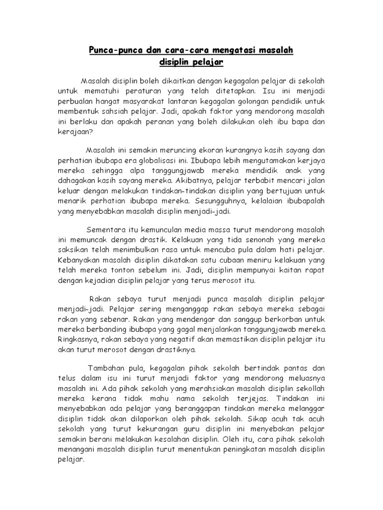 Punca Berlaku Masalah Disiplin Pelajar Pdf
